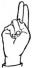 На ћирилици написано ПАУН ПАНИЋ састоји се из 9 слова [?]. Исписано ћириличном једноручном азбуком за глувонеме: